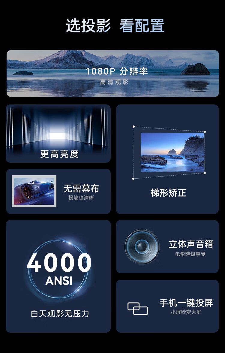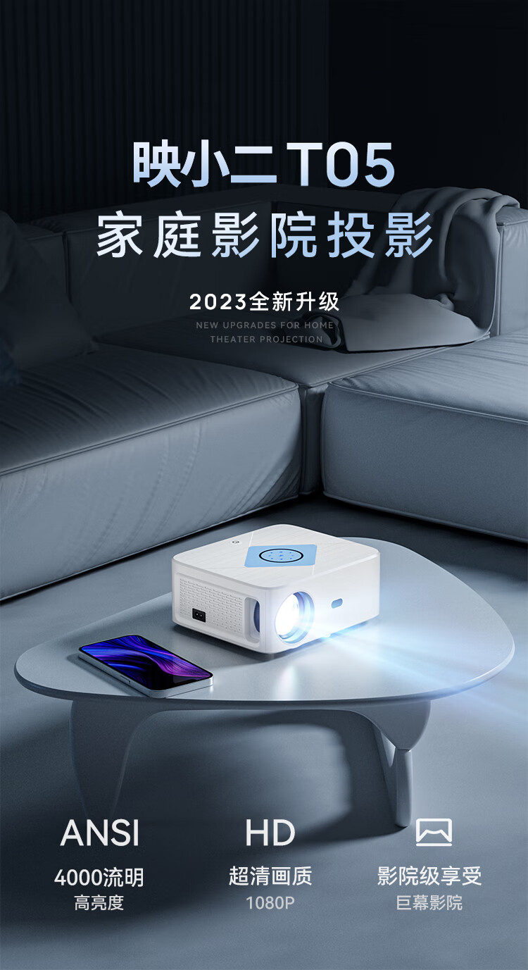 商品名称:映小二旗舰新款投影仪家用家庭影院4K超高清白天直投大屏幕办公室会议室投影机手机无线投屏吊装投墙